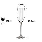 | Conteúdo da embalagem | 6 Taças De Cristal Bordeaux 570 ml, altura 22,1 cm | 6 Taças De Cristal Para Espumante 170 ml, atura 20,8 cm | 6 Taças De Cristal Para Água 430 ml, altura 21,1 cm |