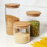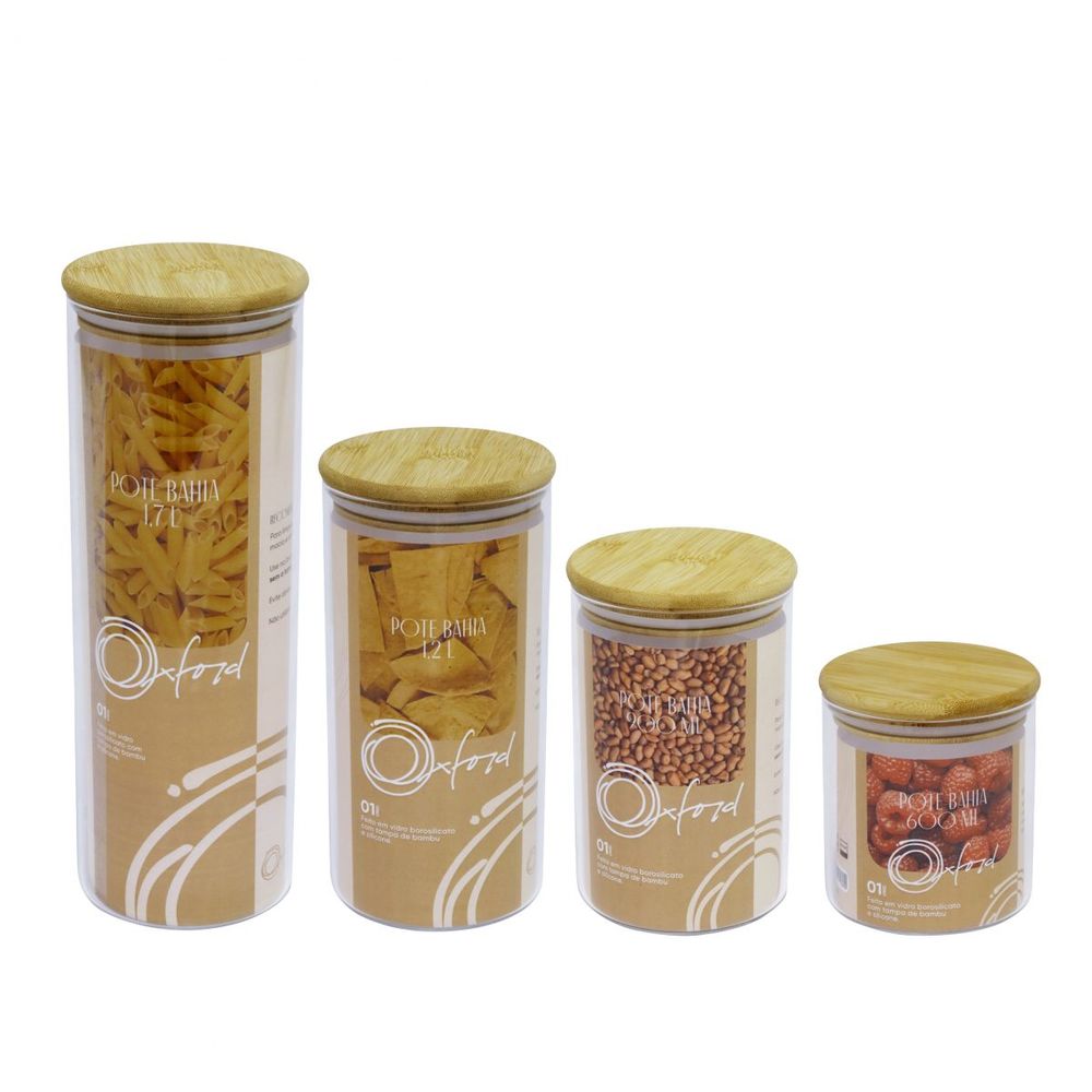 Jogo de 4 Potes Bahia de Vidro Borosilicato Com Tampa de Bambu