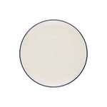 A base off-white com filete azul cria contraste sutil e atemporal, valorizando a simplicidade bem-resolvida do design rústico. Uma louça que comunica acolhimento e autenticidade.